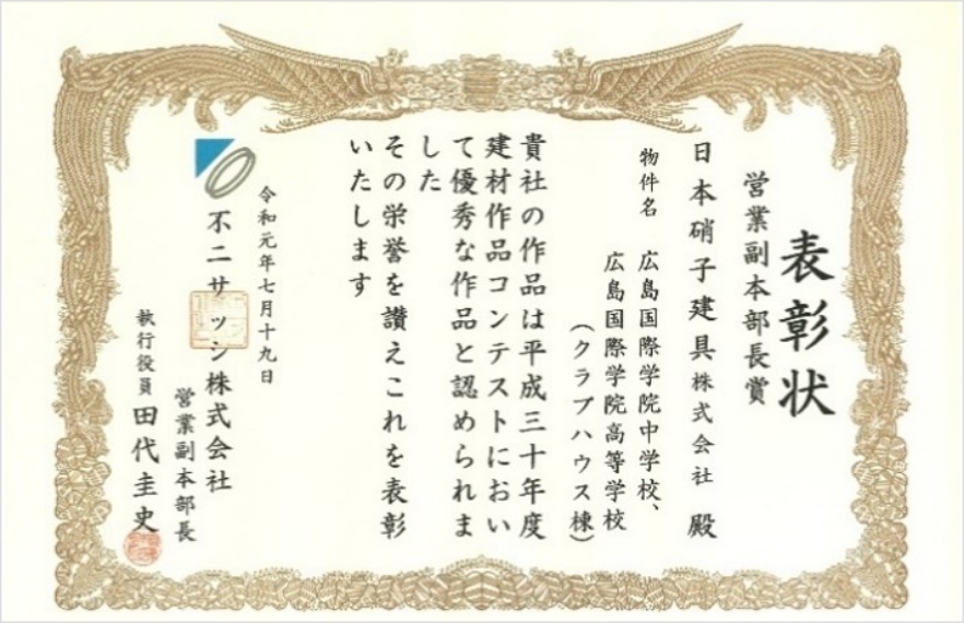 - 平成30年度 建材作品コンテスト 営業副本部長賞