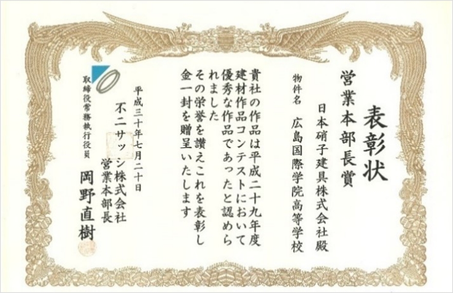 - 平成29年度 建材作品コンテスト 営業本部長賞