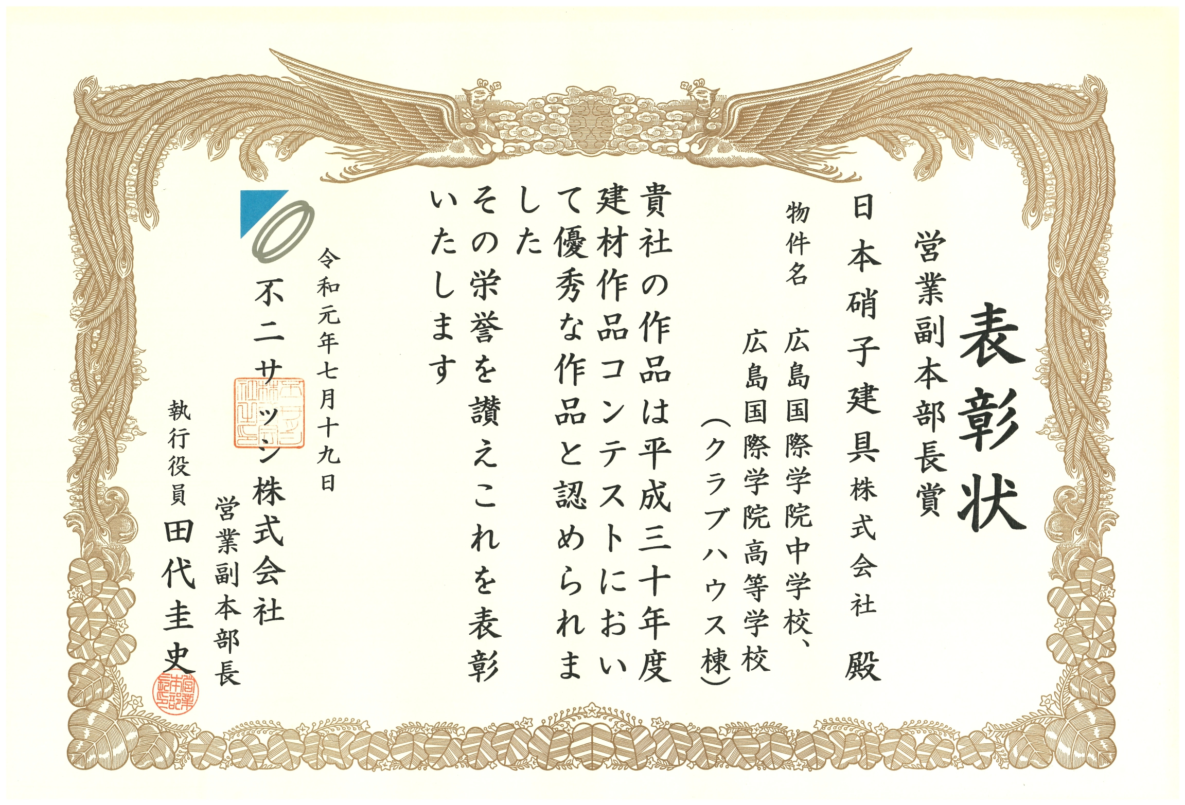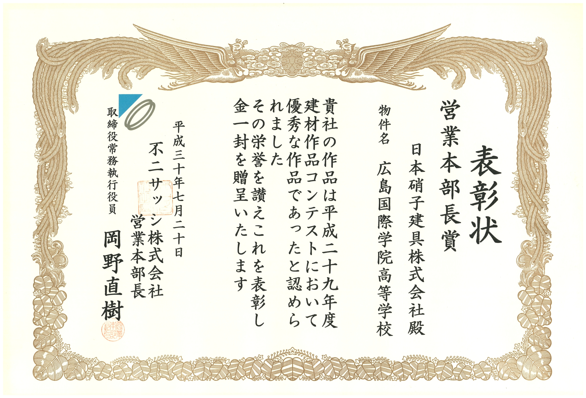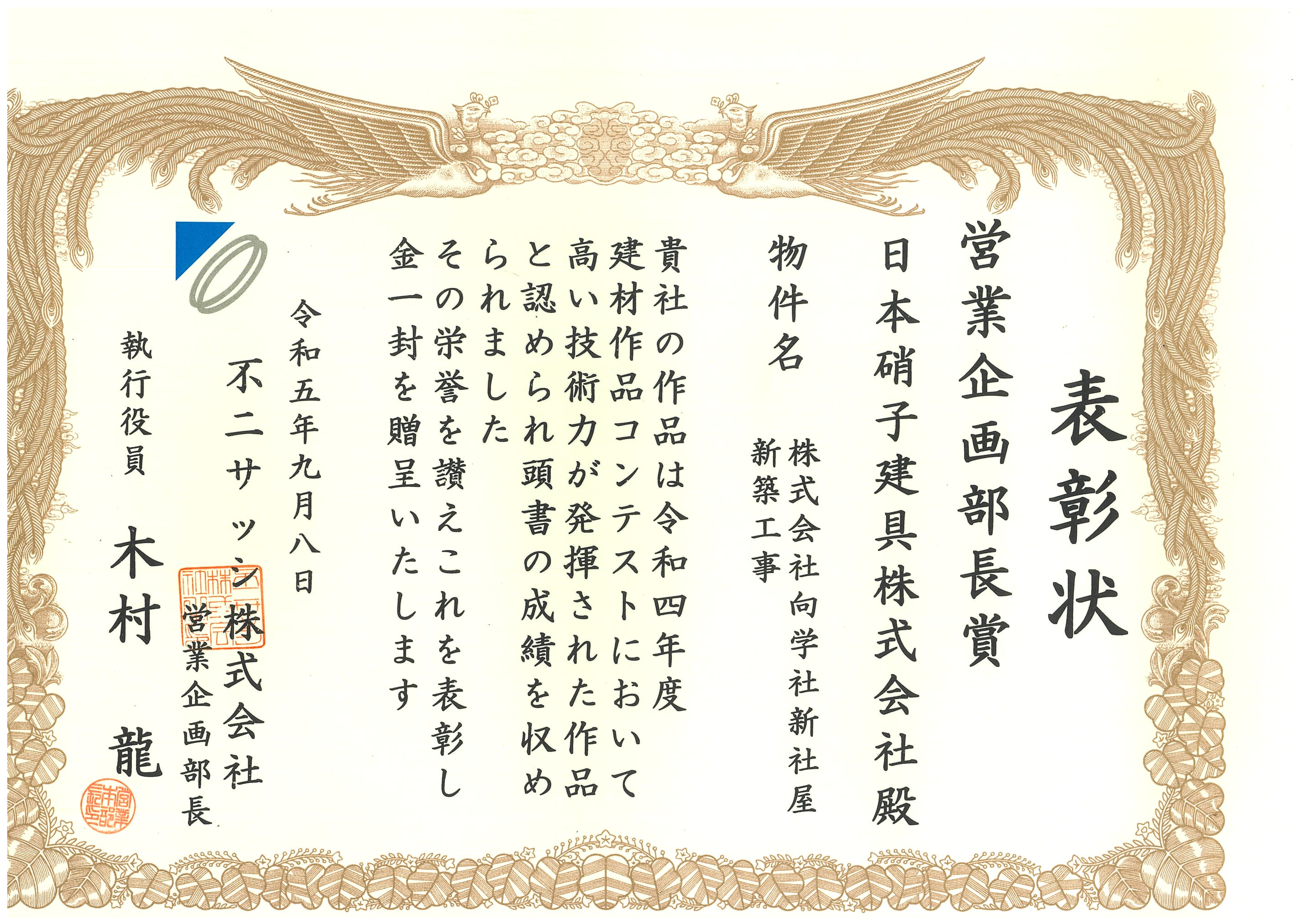 平成30年度 建材作品コンテスト 営業副本部長賞