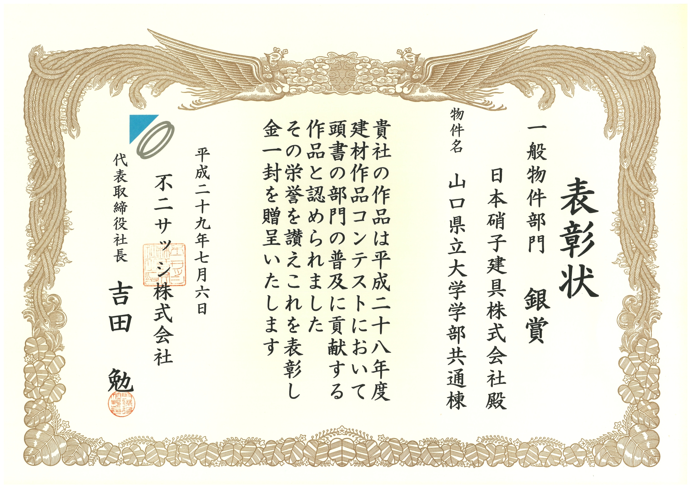 平成29年度 建材作品コンテスト 営業本部長賞