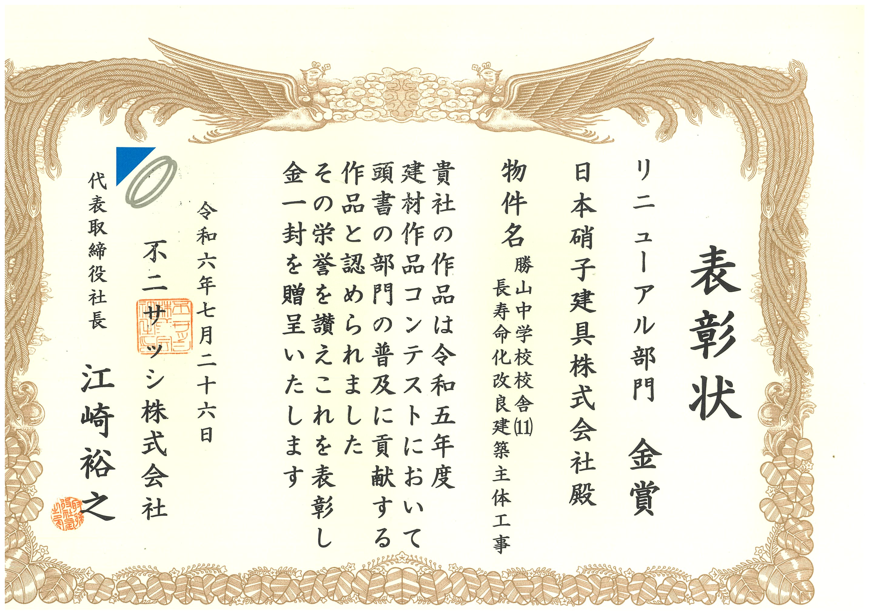 令和6年 建材コンテストリニューアル部門 金賞